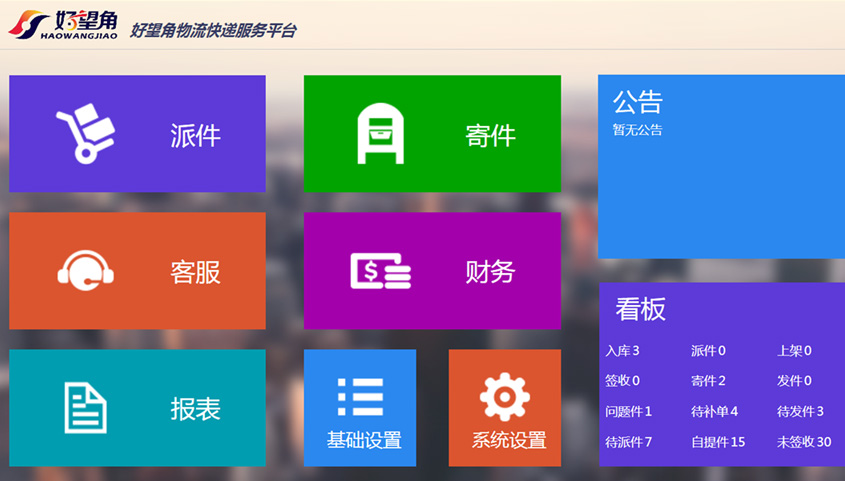 好望角物流快遞服務平臺以“最后一公里”為突破口,實現(xiàn)了快遞從配送中心到客戶手中的全流程服務。系統(tǒng)通過對接上游的快遞公司運單進行派件和計件操作,主要用來幫助該公司正確的統(tǒng)計派件、寄件數(shù)量,客戶服務, 財務結算,店面管理等。用戶可通過使用該物流平臺,實現(xiàn)物流行業(yè)的派件(包括掃碼入庫,自提,收貨確認), 派件登記(電子稱重,物流查詢跟蹤)。