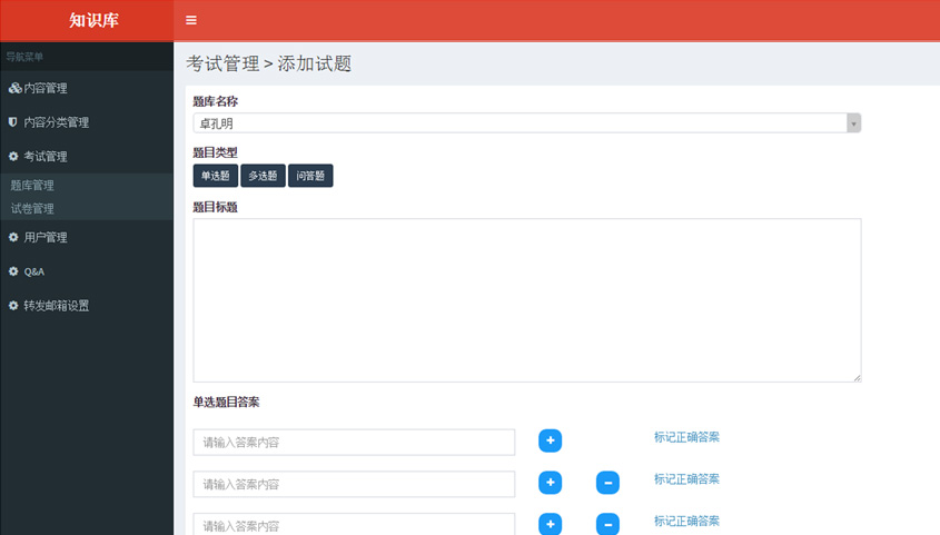 • 考試管理:    管理微信端的答題試卷和題庫(kù)信息